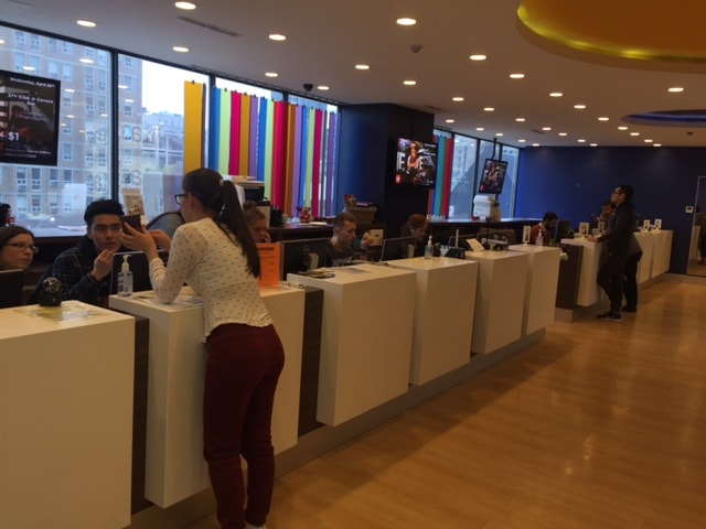 在主校区的大厅入口,可以看到学生顾问柜台,学生可以明确看到顾问们负责的学生国籍;在这个区域,学生允许